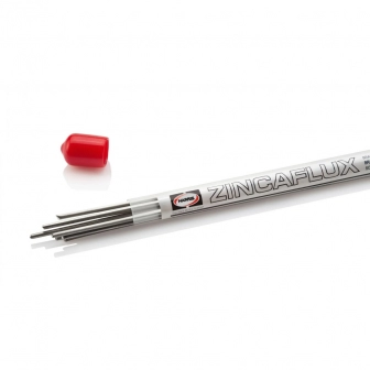 Zincaflux e uma liga que trabalha a baixa temperatura (400°C). As varetas com fluxo interno nao corrosivo permitem a facil brasagem de aluminio com aluminio e aluminio com cobre. O residuo de fluxo nao se desprende nem absorve umidade e, como nao e corrosivo, dispensa limpeza posterior e nao contamina o sistema de refrigeracao e ainda evita a corrosao galvanica nas unioes de cobre com aluminio.
